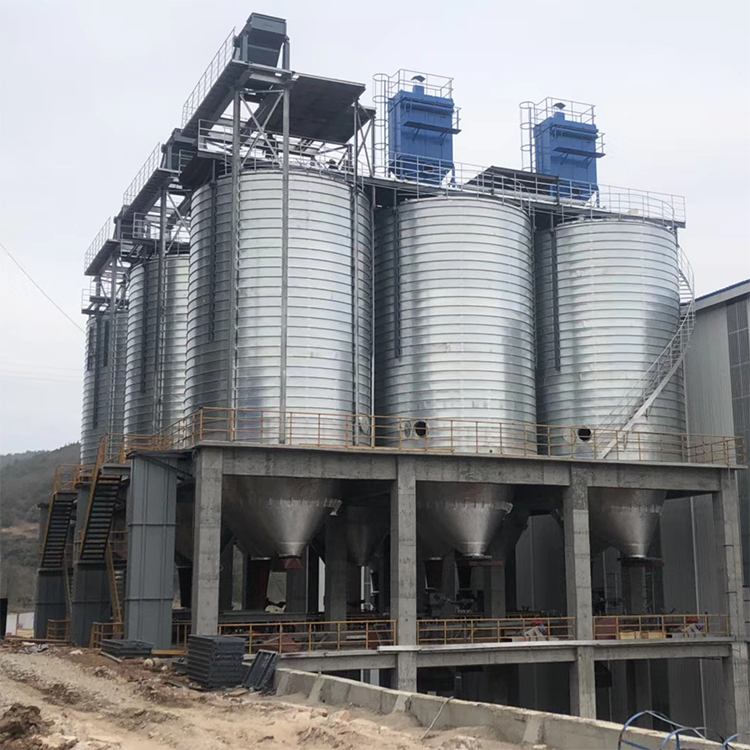 接收与清理设置在筒仓中央该形式筒仓一般采用对称排列,提升机井架固定,经过提升后的物料通过仓顶溜管进人筒仓。这种形式省去了仓顶输送设备和上通廊,从而节省了建造费用,缩短了建造工期。对于贮存时间要求较长的大型粮库,则应根据物料的流向、场地情况、工艺要求等合理地配置投料口、工作塔、烘干塔及中山钢板仓的位置。国华钢板仓介绍了这几种常见的进料形式,实际中可将各种形式相互组合,相互渗透,根据实际情况合理搭配,灵活选用。